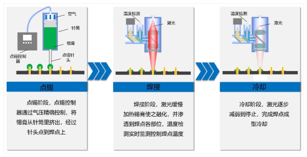 激光锡膏焊接:批量效率高。激光扫描路径固定,可快速完成多焊点或连续焊缝的焊接。
